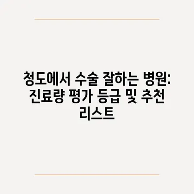 청도 수술 잘하는 병원 가이드와 진료량 평가등급 기준에 대해 자세히 알아보세요. 병원 선택 시 중요한 정보와 팁을 제공합니다.