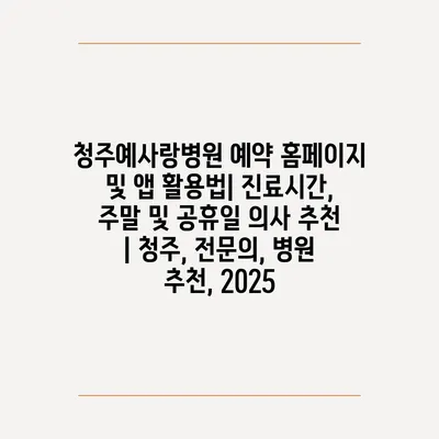 청주예사랑병원 예약 홈페이지 및 앱 활용법| 진료시간, 주말 및 공휴일 의사 추천 | 청주, 전연락, 병원 추천, 2025 에 대해 자주 묻는 질문 TOP 5