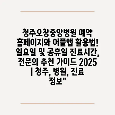 청주오창중앙병원 예약 홈페이지와 어플앱 활용법! 일요일 및 공휴일 진료시간, 전연락 추천 설명서 2025 | 청주, 병원, 진료 정보” 에 대해 자주 묻는 질문 TOP 5