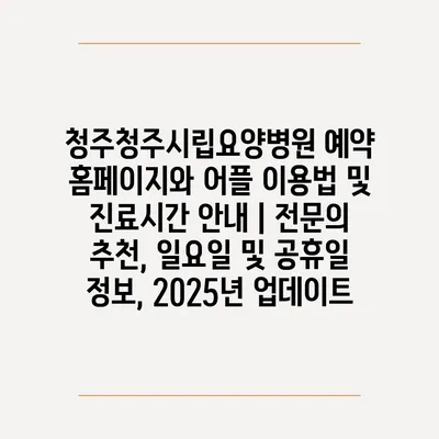청주청주시립요양병원 예약 홈페이지와 어플 이용법 및 진료시간 안내 | 전문의 추천, 일요일 및 공휴일 정보, 2025년 업데이트