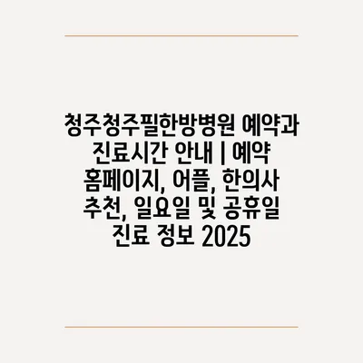 청주청주필한방병원 예약과 진료시간 공지 | 예약 홈페이지, 어플, 한의사 추천, 일요일 및 공휴일 진료 정보 2025 에 대해 자주 묻는 질문 TOP 5