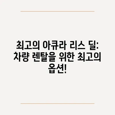 💡 아큐라 리스 딜의 숨겨진 혜택을 지금 알아보세요! 💡