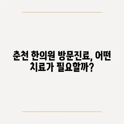 - 답변: 춘천 한의원에 전화를 통해 방문 진료를 신청할 수 있으며, 상담을 통해 환자의 필요에 맞는 진료가 이루어집니다.
