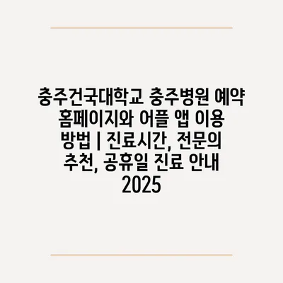 ✅ 충주건국대학교 충주병원 예약 방법과 혜택을 알아보세요.