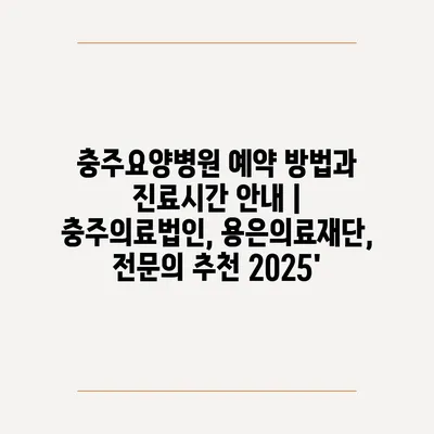 충주요양병원 예약 방법과 진료시간 공지 | 충주의료법인, 용은의료재단, 전연락 추천 2025