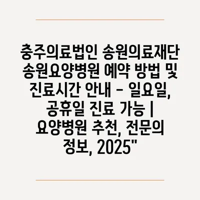충주의료법인 송원의료재단 송원요양병원 예약 방법 및 진료시간 공지 – 일요일, 공휴일 진료 가능 | 요양병원 추천, 전연락 정보, 2025″에 대해 자주 묻는 질문 TOP 5