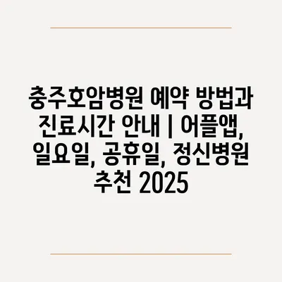 ✅ 충주호암병원 예약 방법과 진료시간을 알아보세요!