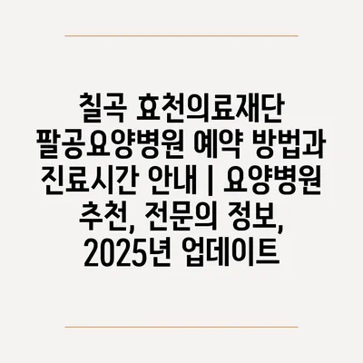 칠곡 효천의료재단 팔공요양병원 예약 방법과 진료시간 공지 | 요양병원 추천, 전연락 정보, 2025년 업데이트 에 대해 자주 묻는 질문 TOP 5