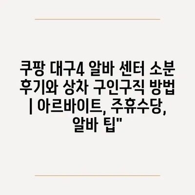 ✅ 쿠팡 대구4 알바의 실제 후기를 통해 근무 환경과 팁을 알아보세요.