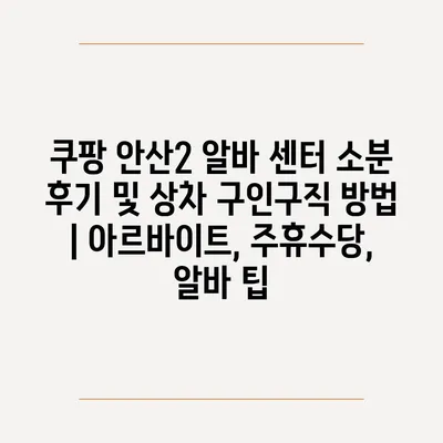 ✅ 쿠팡 안산2 알바의 생생한 후기와 팁을 확인해 보세요!