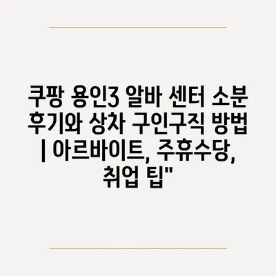 쿠팡 용인3 알바 센터 소분 후기와 상차 구인구직 방법 | 아르바이트, 주휴수당, 취업 팁에 대해 자주 묻는 질문 TOP 5