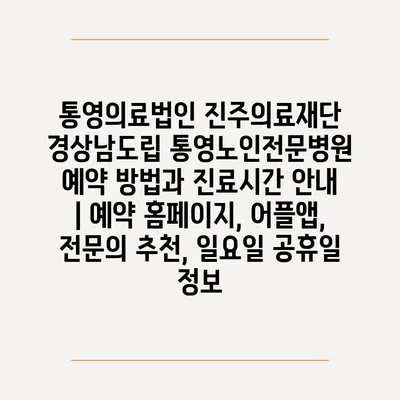 ✅ 통영노인전문병원의 예약 절차와 진료시간을 자세히 알아보세요.