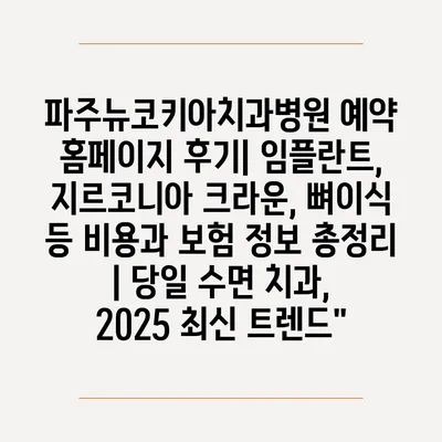 파주뉴코키아치과병원 예약 홈페이지 후기| 임플란트, 지르코니아 크라운, 뼈이식 등 비용과 보험 정보 총정리 | 당일 수면 치과, 2025 최신 트렌드” 에 대해 자주 묻는 질문 TOP 5