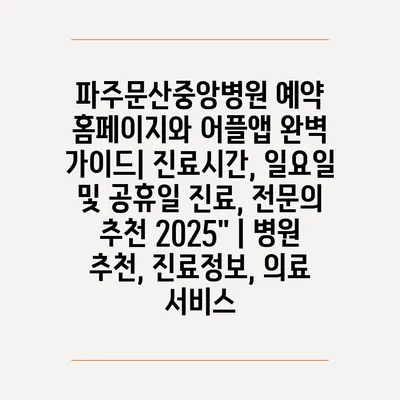 파주문산중앙병원 예약 홈페이지와 어플앱 완벽 가이드| 진료시간, 일요일 및 공휴일 진료, 전문의 추천 2025″ | 병원 추천, 진료정보, 의료 서비스