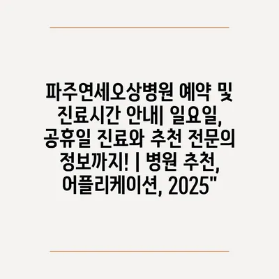 ✅ 파주연세오상병원의 진료 시간과 예약 방법을 상세히 알아보세요.