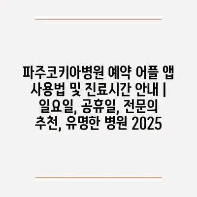 ✅ 파주코키아병원의 진료시간과 예약 방법을 지금 바로 알아보세요.