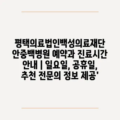 평택의료법인백성의료재단 안중백병원 예약과 진료시간 공지 | 일요일, 공휴일, 추천 전연락 정보 제공’ 에 대해 자주 묻는 질문 TOP 5