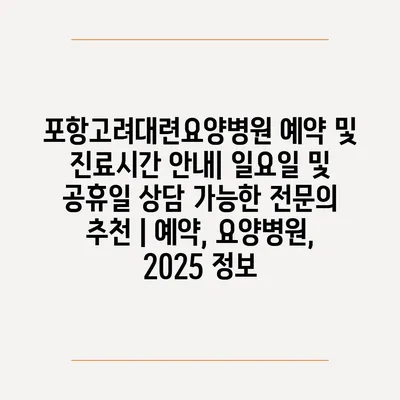 포항고려대련요양병원 예약 및 진료시간 공지| 일요일 및 공휴일 상담 가능한 전연락 추천 | 예약, 요양병원, 2025 정보 에 대해 자주 묻는 질문 TOP 5