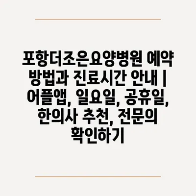 ✅ 포항더조은요양병원의 예약 방법과 진료 시간을 상세히 알아보세요.