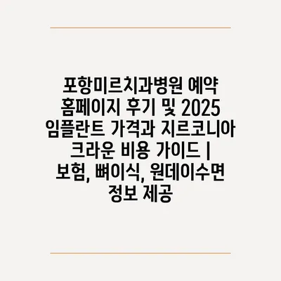 포항미르치과병원 예약 홈페이지 후기 및 2025 임플란트 가격과 지르코니아 크라운 비용 설명서 | 보험, 뼈이식, 원데이수면 정보 제공 에 대해 자주 묻는 질문 TOP 5