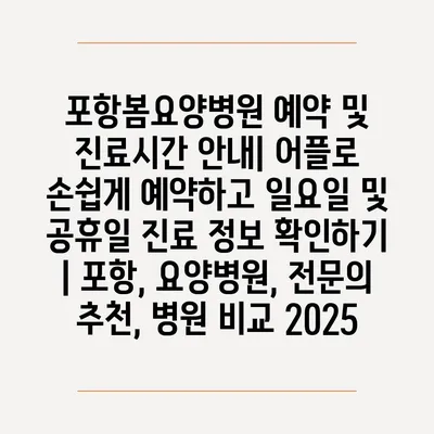 포항봄요양병원 예약 및 진료시간 안내| 어플로 손쉽게 예약하고 일요일 및 공휴일 진료 정보 확인하기 | 포항, 요양병원, 전문의 추천, 병원 비교 2025