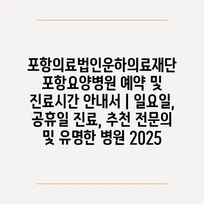 포항의료법인운하의료재단 포항요양병원 예약 및 진료시간 공지서 | 일요일, 공휴일 진료, 추천 전연락 및 유명한 병원 2025