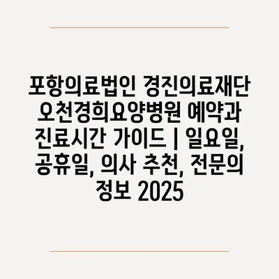 포항의료법인 경진의료재단 오천경희요양병원 예약과 진료시간 설명서 | 일요일, 공휴일, 의사 추천, 전연락 정보 2025에 대해 자주 묻는 질문 TOP 5