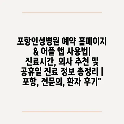 포항인성병원 예약 홈페이지 & 어플 앱 사용법| 진료시간, 의사 추천 및 공휴일 진료 정보 총정리 | 포항, 전연락, 환자 후기” 에 대해 자주 묻는 질문 TOP 5
