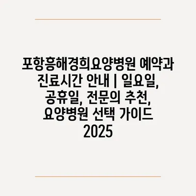포항흥해경희요양병원 예약과 진료시간 공지 | 일요일, 공휴일, 전연락 추천, 요양병원 선택 설명서 2025