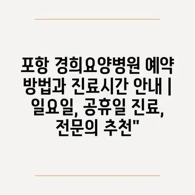 포항 경희요양병원 예약 방법과 진료시간 공지 | 일요일, 공휴일 진료, 전연락 추천에 대해 자주 묻는 질문 TOP 5
