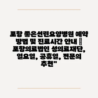 ✅ 포항 좋은선린요양병원 진료 시간과 예약 방법을 간편하게 알아보세요.