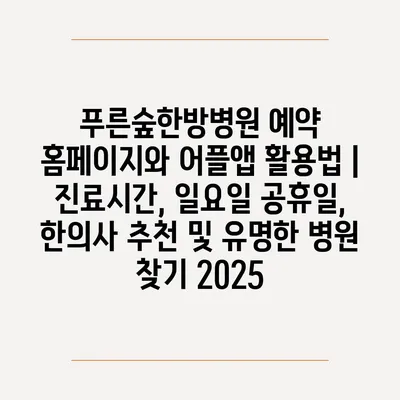 푸른숲한방병원 예약 홈페이지와 어플앱 활용법 | 진료시간, 일요일 공휴일, 한의사 추천 및 유명한 병원 찾기 2025 에 대해 자주 묻는 질문 TOP 5