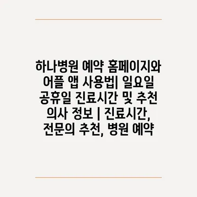 하나병원 예약 홈페이지와 어플 앱 사용법| 일요일 공휴일 진료시간 및 추천 의사 정보 | 진료시간, 전문의 추천, 병원 예약