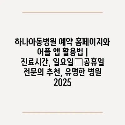 하나아동병원 예약 홈페이지와 어플 앱 활용법 | 진료시간, 일요일・공휴일 전연락 추천, 유명한 병원 2025 에 대해 자주 묻는 질문 TOP 5