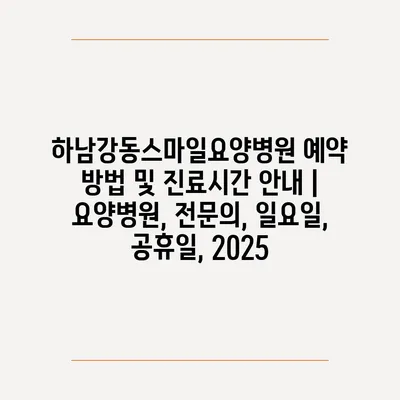 하남강동스마일요양병원 예약 방법 및 진료시간 공지 | 요양병원, 전연락, 일요일, 공휴일, 2025에 대해 자주 묻는 질문 TOP 5