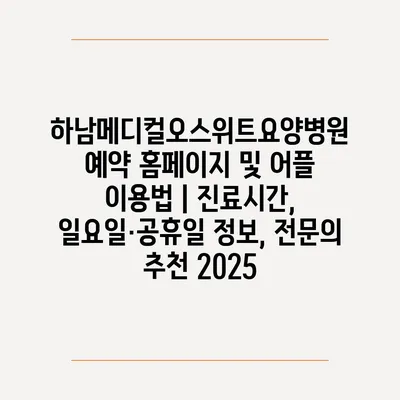 하남메디컬오스위트요양병원 예약 홈페이지 및 어플 이용법 | 진료시간, 일요일·공휴일 정보, 전연락 추천 2025 에 대해 자주 묻는 질문 TOP 5