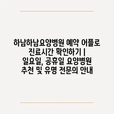 ✅ 하남하남요양병원의 예약 방법과 진료시간을 지금 바로 알아보세요.