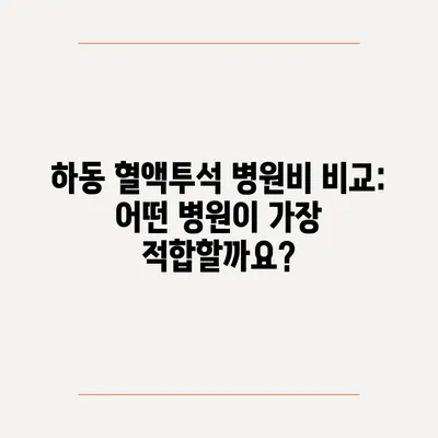 하동 혈액투석 병원비 비교: 어떤 병원이 가장 적합할까요?