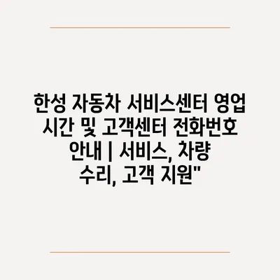 한성 자동차 서비스센터 영업 시간 및 고객센터 전화번호 안내 | 서비스, 차량 수리, 고객 지원”