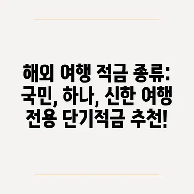 해외 여행 적금 종류: 국민, 하나, 신한 여행 전용 단기적금 추천!