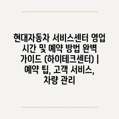 현대자동차 서비스센터 영업 시간 및 예약 방법 완벽 설명서 (하이테크센터) | 예약 팁, 고객 서비스, 차량 관리