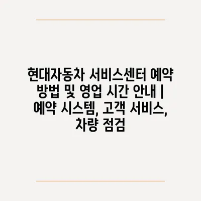 현대자동차 서비스센터 예약 방법 및 영업 시간 공지 | 예약 시스템, 고객 서비스, 차량 점검 에 대해 자주 묻는 질문 TOP 5