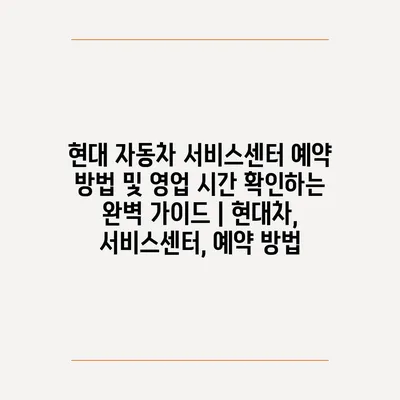 현대 자동차 서비스센터 예약 방법 및 영업 시간 확인하는 완벽 가이드 | 현대차, 서비스센터, 예약 방법