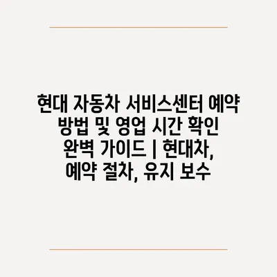 ✅ 현대 자동차 서비스센터의 예약 방법과 영업 시간을 확인해 보세요.