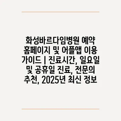 화성바르다임병원 예약 홈페이지 및 어플앱 이용 설명서 | 진료시간, 일요일 및 공휴일 진료, 전연락 추천, 2025년 최신 정보 에 대해 자주 묻는 질문 TOP 5