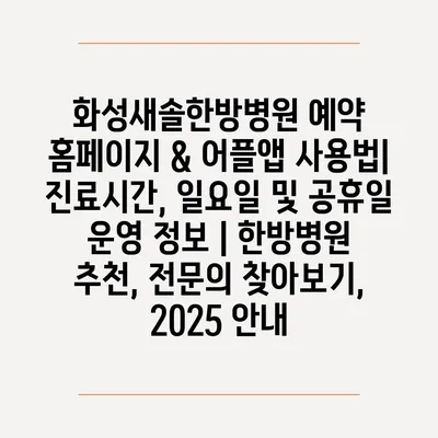 화성새솔한방병원 예약 홈페이지 & 어플앱 사용법| 진료시간, 일요일 및 공휴일 운영 정보 | 한방병원 추천, 전연락 찾아보기, 2025 공지 에 대해 자주 묻는 질문 TOP 5