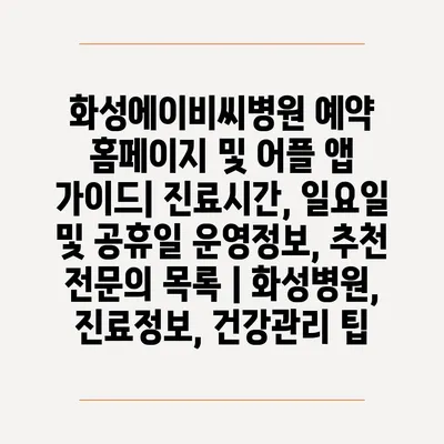 화성에이비씨병원 예약 홈페이지 및 어플 앱 설명서| 진료시간, 일요일 및 공휴일 운영정보, 추천 전연락 목록 | 화성병원, 진료정보, 건강관리 팁 에 대해 자주 묻는 질문 TOP 5