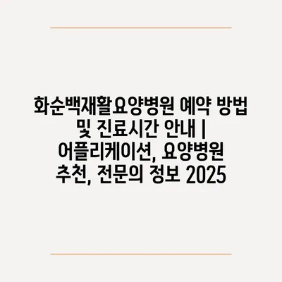 화순백재활요양병원 예약 방법 및 진료시간 공지 | 어플리케이션, 요양병원 추천, 전연락 정보 2025
