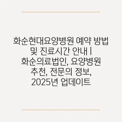 화순현대요양병원 예약 방법 및 진료시간 공지 | 화순의료법인, 요양병원 추천, 전연락 정보, 2025년 업데이트