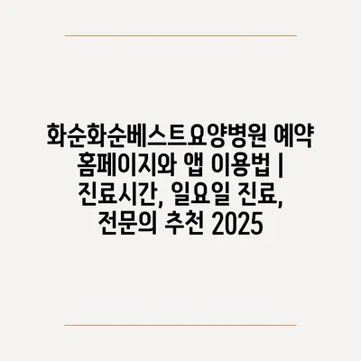 화순화순베스트요양병원 예약 홈페이지와 앱 이용법 | 진료시간, 일요일 진료, 전연락 추천 2025에 대한 글입니다.